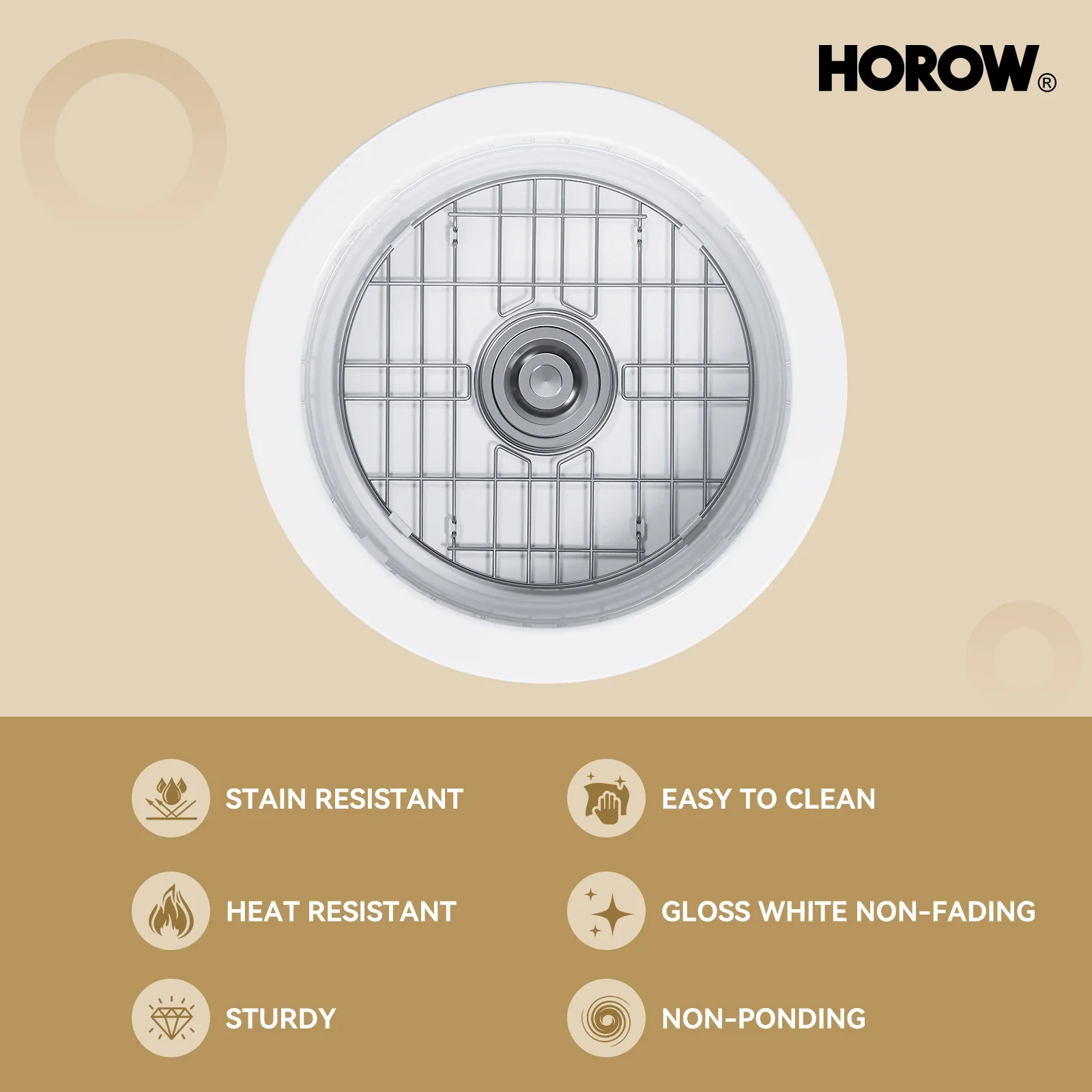 The HOROW C818W kitchen sink features a dual mount design (undermount and topmount) for versatile installation. With an 18.5-inch width, this durable fireclay sink offers heat resistance, providing a stylish and practical solution for any kitchen.